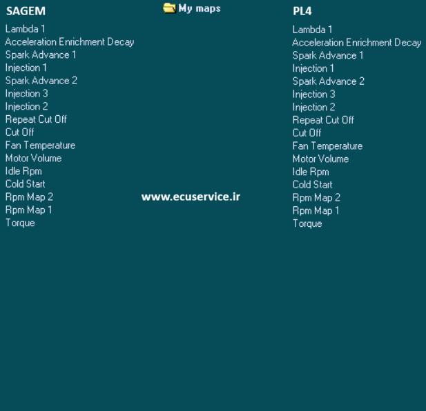جداول مپ ساژم والئو S2000 خودرو ۲۰۶ و سمند . ۴۰۵ . پراید مپ لیست وینولز (Tabel maps)